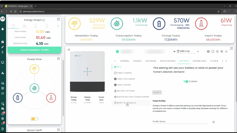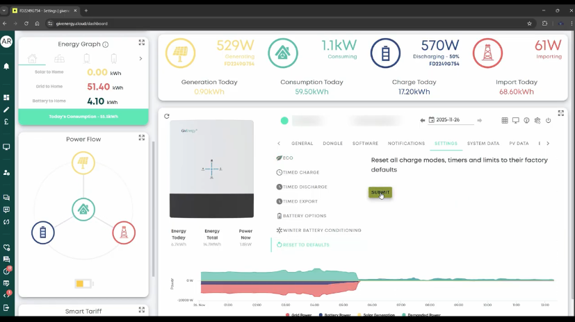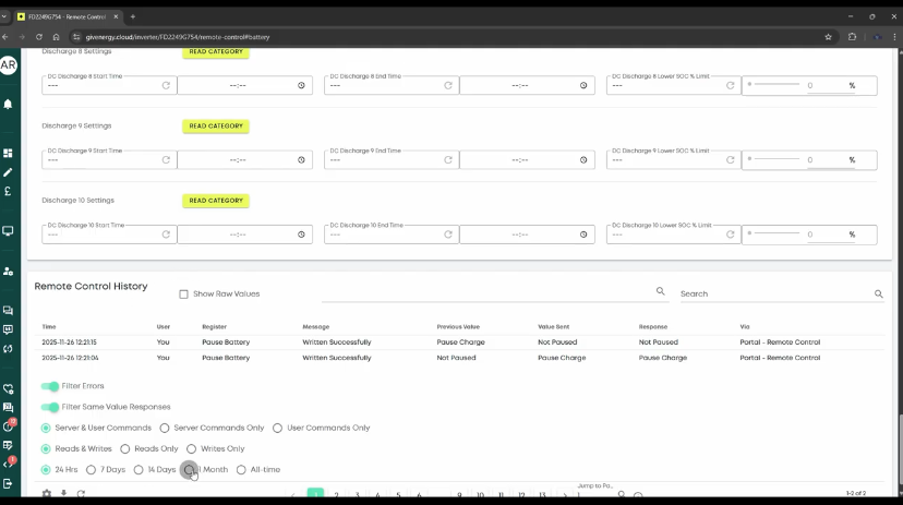 • If behaviour stabilises, re-enter your preferred charge/discharge times in the Portal Settings tab or via the app.