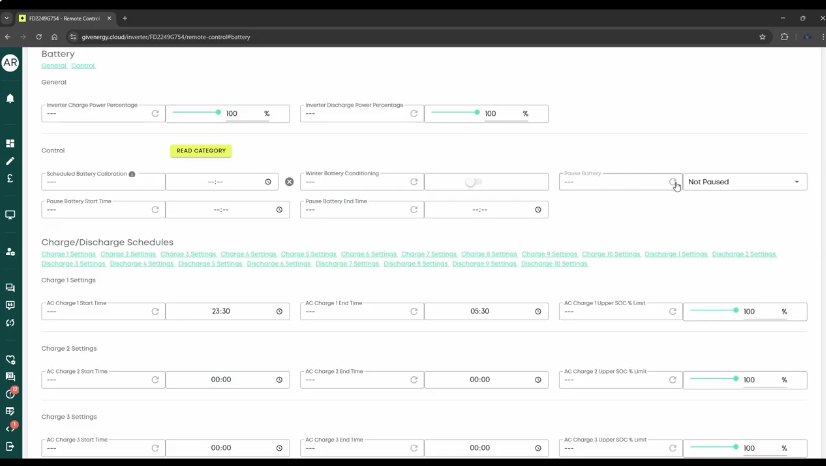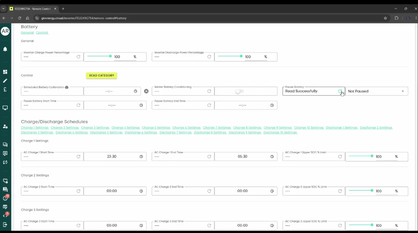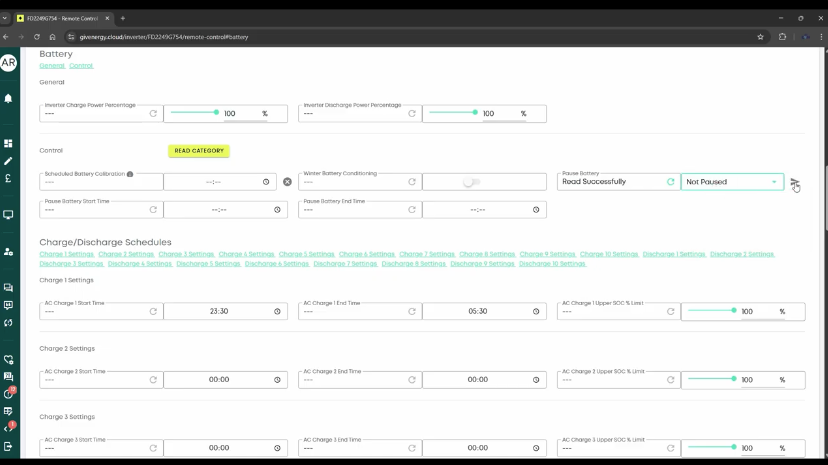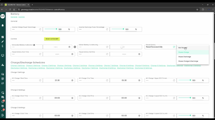 • With schedules reset and the battery confirmed as Not paused, observe whether the system returns to normal behaviour.