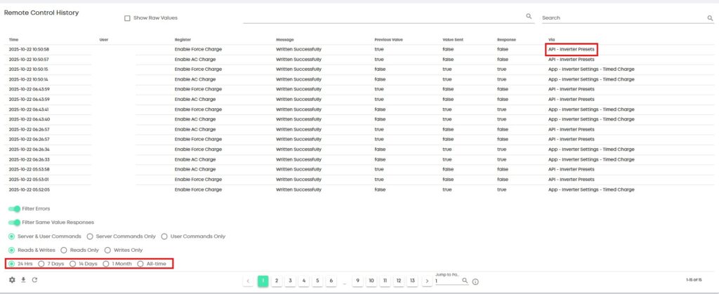 - System behaviour doesn’t match configured charge/discharge times or modes.