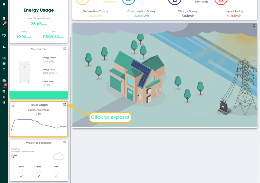 Step 2: After logging in, you’ll be taken to the Monitoring Portal Dashboard. From here, you can view information about your systems import/export data, solar forecasts, tariff savings, and much more.